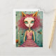 Adorable Lady With Cat Ears Mixed Media Collage Postcard
