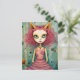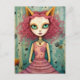 Adorable Lady With Cat Ears Mixed Media Collage Postcard