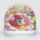 Illustration charmante d'un joli coccinelle de dessin animé reposant sur une fleur colorée entourée de fleurs et de verdure vibrantes, rayonnant d'innocence et de joie dans un bel environnement printanier.