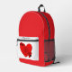 Get ready for back to school with this super cute red and white backpack featuring two adorable ladybugs on a red heart and your name above the zipper