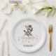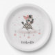 Cute baby shower or birthday paper plate featuring adorable little female zebra wearing a cute pink bow with some love hearts