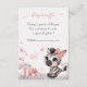 Cute girl diaper raffle enclosure card featuring adorable little female zebra wearing a cute pink bow with some love hearts sitting on clouds