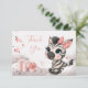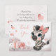 Cute thank you card featuring adorable little female zebra wearing a cute pink bow with some love hearts sitting on clouds