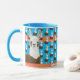 Pattern of curious llamas create a peaceful orange, white and brown hue to this design. Two curious mama llamas watch with great curiosity. Finally text comes with personalized ability in an easy template in case “I love you” is too romantic for the gift you are giving. Handle and interior of the cup can also change. The eggshell blue seemed a great enhancement for the light sunset orange background of the llama pattern. All in all, it makes a crisp, fresh start to any morning.
