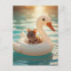 Adorable Mouse Floating on a Swan Float Postcard