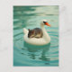 Adorable Mouse on a Swan Pool Float Postcard
