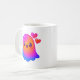 Adorable Neon Kawaii Ghost with Gradient Glow and Coffee Mug