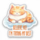 Bring a smile to your day with our 'Believe Me! I’m Trying My Best' sticker featuring an irresistibly cute orange tabby cat. This heartwarming and relatable artwork is perfect for cat lovers who know the struggle of doing their best. A charming gift for any occasion or a fun treat for yourself!