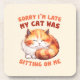 Celebrate the relatable struggles of every cat lover with our 'Sorry I’m Late, My Cat Was Sitting On Me' coaster! Featuring an adorable orange tabby cat, this playful and humourous artwork is perfect for proud cat parents who can’t resist their feline’s charm. A delightful gift for yourself or any cat enthusiast.