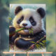 Peinture de mignons jeunes panda mangeant des sprigs de bambou vert