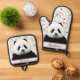 Adorable Panda Bear Animal Name Pretty Pattern Oven Mitt & Pot Holder Set