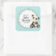 An adorable baby panda watercolor illustration highlights this baby shower sticker in a trendy aqua and brown colour palette. Edit the text with your event information.