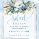 Adorable Pastel Blue White Floral Sweet 16 Invites
