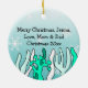 Adorable Personalized Baby Shark and Snowflake teal Christmas ornament.