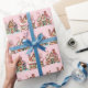 Adorable Pink Pastel Gingerbread Houses Wrapping Paper