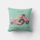 Adorable pink tractor & trailer with farm animals throw pillow