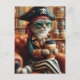 A pirate cat with a coffee in a vintage book store fantasy AI generated art
