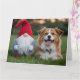 Adorable Plush Gnome and Fluffy Dog Lying in Grass Card