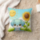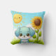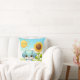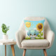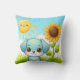 Adorable Puppy with Sunflower and Smiling Sun Throw Pillow