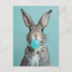 Adorable Rabbit Chewing Blue Bubble Gum Postcard