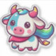 This delightful design showcases an adorable cartoon-style cow with rainbow accents on its horns, tail, and scarf. Perfect for lovers of cute and colourful art, this whimsical cow brings a burst of joy and charm with its playful design and vibrant pastel colours. Ideal for fans of farm animals, kawaii aesthetics, or unique artwork that stands out, this illustration captures the fun and fantasy of a rainbow-inspired theme. A perfect addition to brighten any collection for animal lovers or those who enjoy vibrant, quirky designs.
