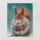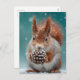 Adorable Red Squirrel in the Snow with a Pinecone Holiday Postcard