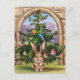Adorable Silly Christmas Rabbit Under the Tree Postcard