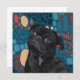 Adorable Sitting Black Pug Dog on Blue Abstract Flat Card – a delightful and charming way to send your greetings, thanks, or well wishes. This flat card features an irresistibly cute black pug dog sitting against a vibrant blue abstract background, adding a touch of whimsy and cuteness to your messages.