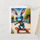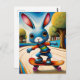 AI generated art of an adorable skateboarding rabbit wearing a colourful striped shirt with storybook style trees in the background