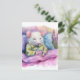 Adorable Sleeping White Mouse in PJs Watercolor Postcard
