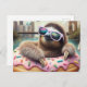 Adorable Sloth floating in a Doughnut Postcard