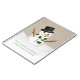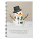 This festive item features Destei's cartoon illustration of a cute snowman. The snowman is wearing a black hat and a scarf that has green and white stripes. The background colour is beige with a pattern of white dots. Under the snowman there is a personalizable text area for the title.