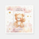 Add a sweet and personalized touch to your baby girl’s 1st birthday with this adorable teddy bear paper napkin! Featuring a watercolor bear swinging in the clouds, surrounded by golden stars and a pink balloon, this dreamy design includes a custom name and message like “Let’s Celebrate!”. Perfect for baby birthdays, baby showers, or toddler parties. Coordinates beautifully with matching tableware in our teddy bear birthday collection.