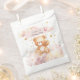 Send guests home with love using this adorable teddy bear favour bag! Featuring a watercolor bear swinging through dreamy pink clouds and golden stars, with a customizable name and balloon detail, it’s the perfect addition to your baby girl’s 1st birthday or shower celebration. Ideal for holding candies, small gifts, or thank-you notes. A charming match to the full teddy bear birthday party collection.