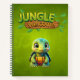 Personalize the back cover of this adorable "Jungle Welcome" notebook! Whimsical baby box turtle cartoon graphic animal character on a forest green background. This design is perfect for tortoise lovers, safari woodland nature wildlife fans, and anyone who enjoys cute, cozy zoo vibes.