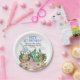 Cute jungle themed paper plate featuring adorable dinosaurs and lust tropical greenery. Customize the wording to suit your occasion, e.g. birthday, baby shower, baby sprinkle, baptism, christening, holy communion