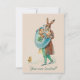 This very cute vintage Easter party invitation features two anthropomorphic rabbits ready for the Easter egg hunt. The cover of the invitation features a vintage painting of a coat-wearing rabbit carrying two piglets in a large blue Easter egg. The painting on the reverse side features a sweet white rabbit playing music next to a large egg. Use our text templates to customize the invitation for your uses.