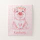 Adorable Watercolor Pink Pig with Name Jigsaw Puzzle