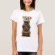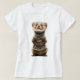A heartwarming digital illustration featuring a cute, wide-eyed weasel or ferret dressed in a cozy, hand-knitted sweater. The character is depicted with soft, detailed brown fur and large, expressive dark eyes that radiate charm and innocence. The sweater showcases a rich, multi-colored knit pattern with earthy tones of orange, teal, and cream, complete with tiny button details. Set against a clean, neutral background, the artwork captures a whimsical and gentle aesthetic, highlighting the intricate textures of both the fur and the yarn.