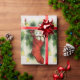 Cute retro wrapping paper has a vintage Christmas card with a sweet little Kitten in a red stocking. The stocking is decorated with a pretty, red satin bow, pine tree and holly branches, red berries and bead garland.