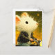Adorable White Mouse riding a Motorcycle in Black Postcard