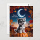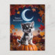 Adorable Wolf with Crescent Moon Halloween Art Postcard