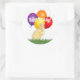 Seal the mail for a birthday party or change the message for other party ideas with this adorable sticker. The mixed photo and digital art round sticker design features a yellow ducklings on grass with four colourful balloons between and above them with some confetti floating around. Personalize the message in the template field or click customize to select a font style, size, and colour you prefer.