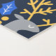 Splendid image on a customized yoga mat with your monogrammed initials and an attractive Scandinavian style with deer in royal and dark blue with yellow accents. Click on "Personalize" to customize this mat and make it your own.