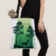 Elegant image on a tote bag of a deer in a green forest painting. Take it with you on vacation or just anywhere to remind you of a future vacation you'd like to take.