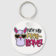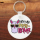 Delightful image on a keychain of a llama with sunglasses saying, "Not my prob-llama."