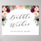 Adore Pink & Burgundy Floral Wedding bubbles newlyweds send-off sign with custom text poster - with the words "bubble wishes" written out in a beautiful fancy calligraphy script font. An elegant, chic, yet simple design in a black font and any background colour you choose. Just click the customize further link, shown under the text personalization area on the right, and choose your custom colour background. This sign template makes it fast and easy to create stunning additions to your wedding decor. complimentary decor, signs, and stationery available in my shop and collection below. If you need something designed that isn't available already please message me on zazzle.