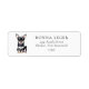 Sympa, heureux, souriant Chihuahua illustration de chien. Prêt à ajouter votre nom et votre adresse personnalisés avec une police moderne. Design simple et minimaliste. Trois couleurs, noir, tan et blanc Chihuahua.