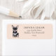 Sympa, heureux, souriant Chihuahua illustration de chien. Prêt à ajouter votre nom et votre adresse personnalisés avec une police moderne. Design simple et minimaliste. Trois couleurs, noir, tan et blanc Chihuahua.