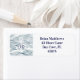 Le monogramme d'ancre marine moderne et blanc adresse le retour étiquette. Une ancre blanche se trouve au sommet d'un motif à vagues de la marine. Un cadre de corde nautique blanc et marine entoure votre initiale. Personnalisez le cadre nautique avec votre initiale dans la police et la couleur de votre choix. Les informations textuelles peuvent être personnalisées pour correspondre à vos détails.
